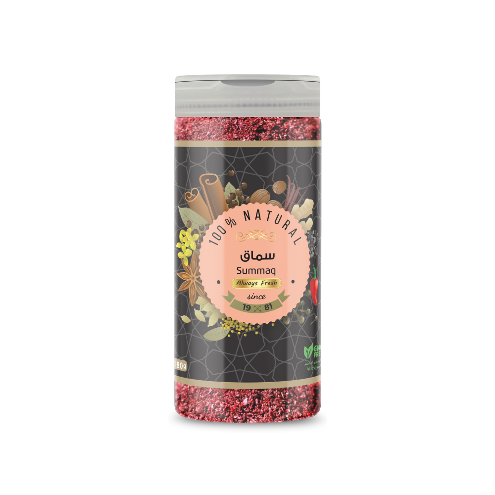 بهار السماق هو أحد التوابل الفريدة التي تضيف نكهة حمضية لذيذة إلى الأطباق يتميز بلونه الأحمر العميق وطعمه المنعش الذي يعزز نكهة الأطعمة المختلفة يستخدم في تحضير العديد من الأطباق التقليدية مثل السلطات والمشاوي ويعد إضافة مثالية للوصفات التي تحتاج إلى لمسة من الحموضة الطبيعية