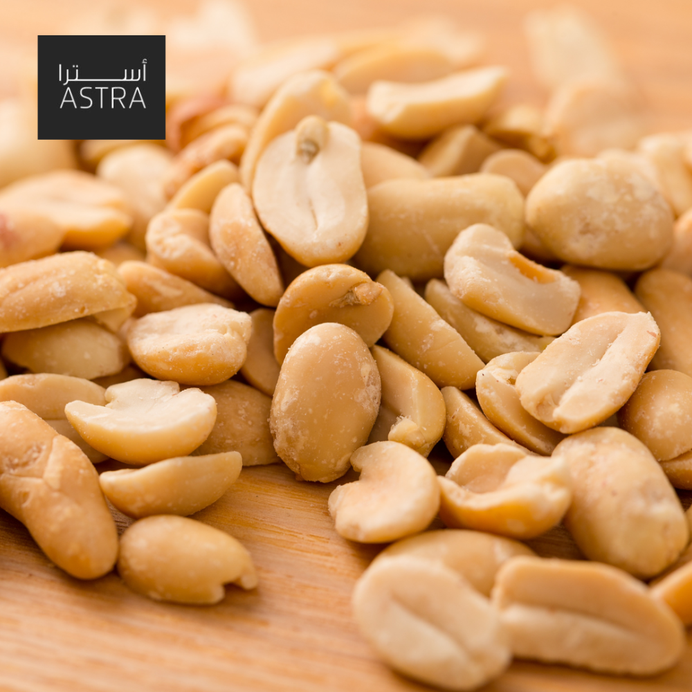 - فول سوداني أبيض نيء مصدر غني بالبروتينات النباتية التي تساعد على بناء العضلات وتعزيز صحة الأنسجة.